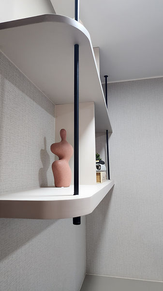 Nuestro trabajo incluyó la ejecución integral de melamina, MDF pintado, carpintería metálica, vidrio, espejos y cintas LED, abarcando cada espacio clave del departamento piloto: